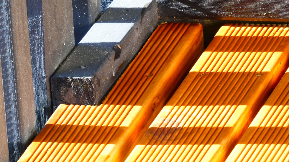 今回使用のデッキ材は旧デッキ材の2倍厚。軽く10年はもつかな。